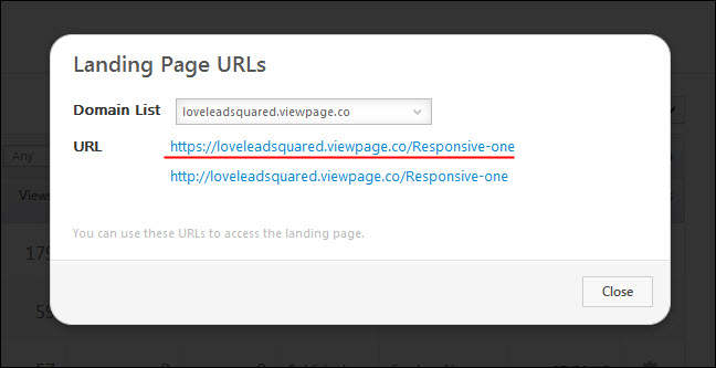 Select the Url having viewpage.co as domain from Landing page Url popup window.